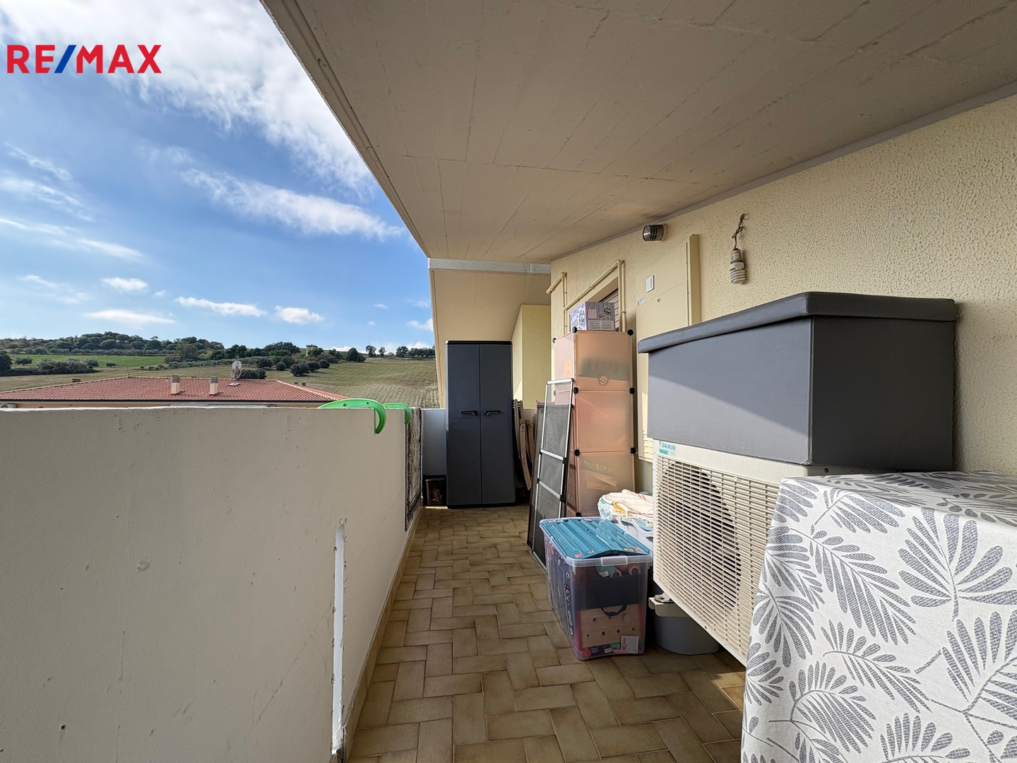 * dva balkony a prostorná střešní terasa s výhledem na moře