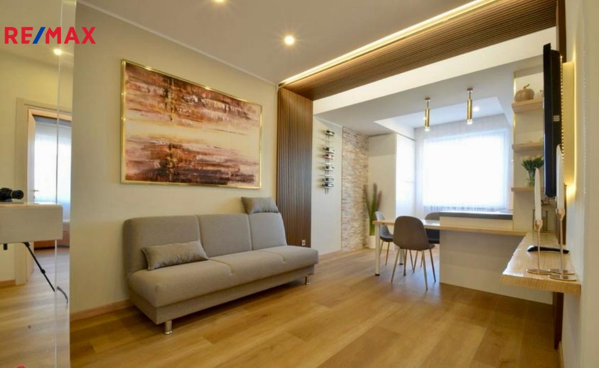 Moderní interiér s nadčasovým designem Byt prošel kompletní a důkladnou rekonstrukcí pod vedením naší architektky a interiérové designérky, která se specializuje na moderní, funkční a esteticky vyvážené bydlení. Každý detail byl pečlivě promyšlen, aby interiér působil vzdušně, prakticky a nadčasově. Použity byly kvalitní materiály a elegantní prvky, které splňují očekávání i náročných klientů.